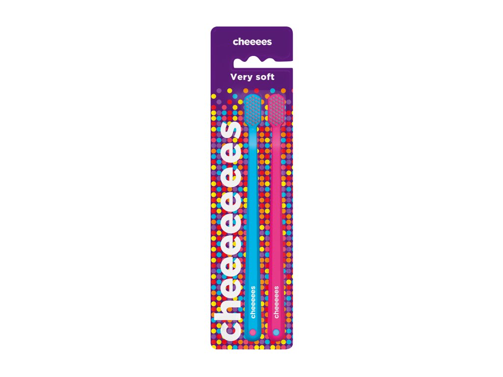 CHEEEES Zahnbürsten mit sehr feinen Borsten - blau & pink