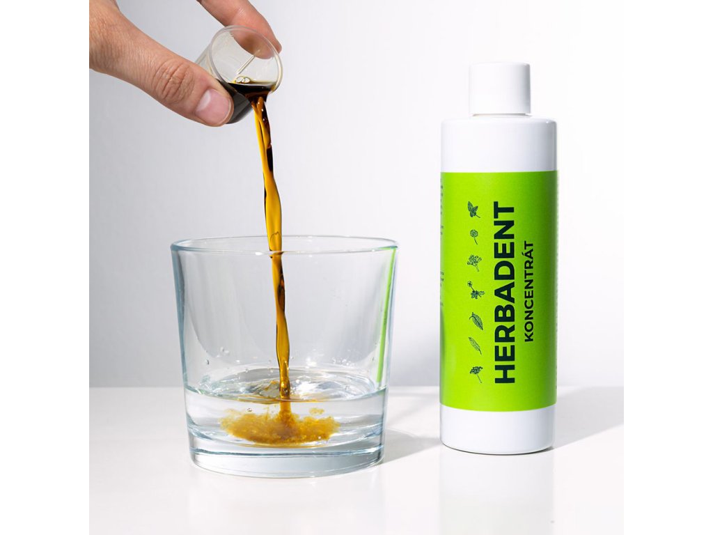 - Dank der Wirkung der Kräuter hilft das Konzentrat, die Symptome einer Parodontitis wie Entzündungen und Zahnfleischbluten zu bekämpfen